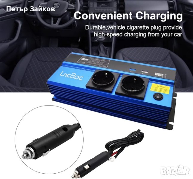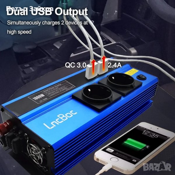 LncBoc Инвертор за захранване за кола 1000 W DC 12 V към AC 220 V 240 V