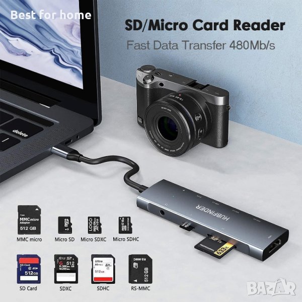 USB C хъб, многопортов адаптер 9 в 1 хъб със 100W мощност