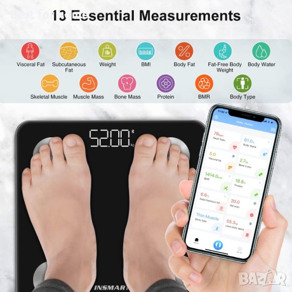 INSMART Bluetooth кантар за телесни мазнини,
