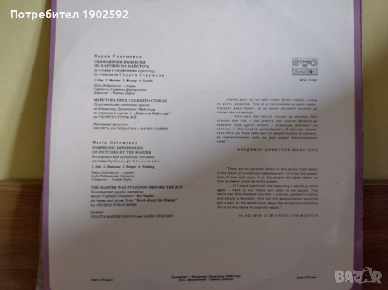 Марин Големинов. Симфонични импресии по картини на Майстора ВСА 11163 → Обява 43057256
