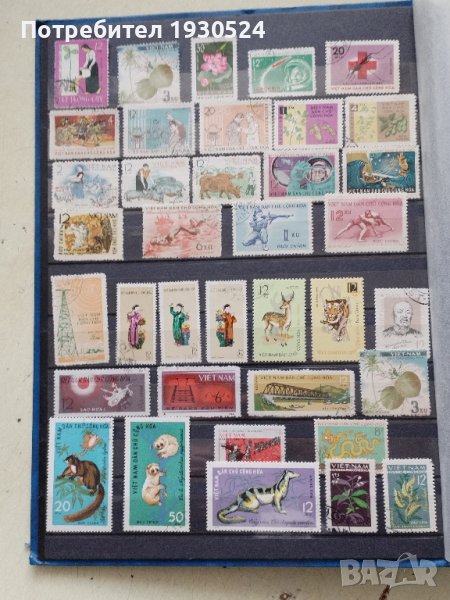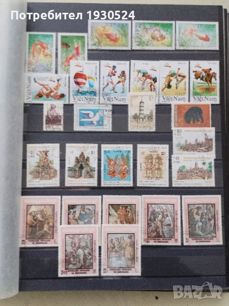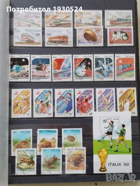 Продавам класьор с марки с размери 23см на 31см, преобладават марки от Виетнам има и други азиатски държави има и няколко от България. Общо марките са 874 броя и 26 блока.Не ми позволява да кача всчки снимки в обявата. За инфо налично. Цена на класьора 67 евро.