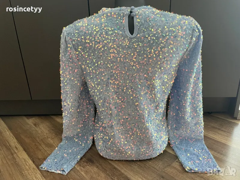 Блуза подходяща за идващите празници. Много лъскава и блестяща ,както се вижда и от снимките. Размер М. Изпращам с Еконт