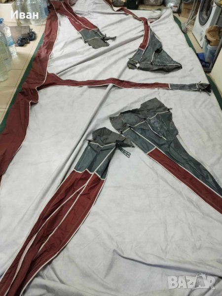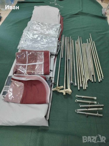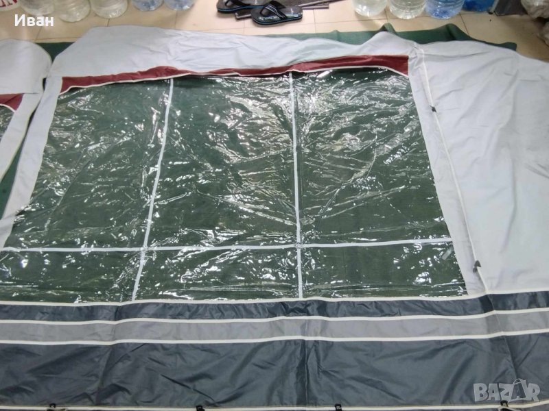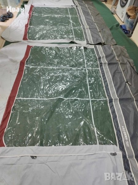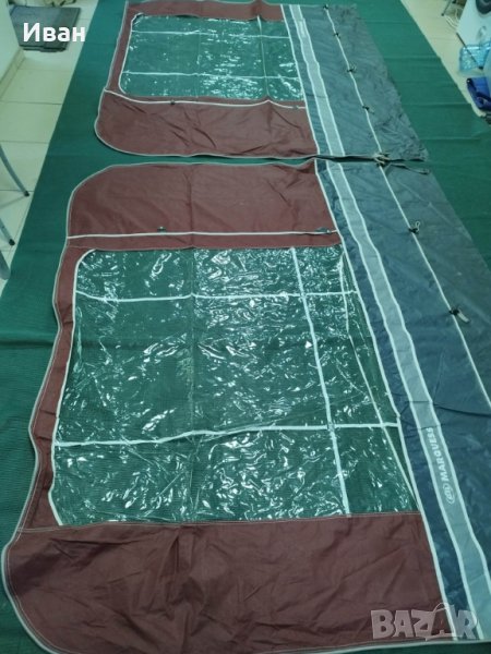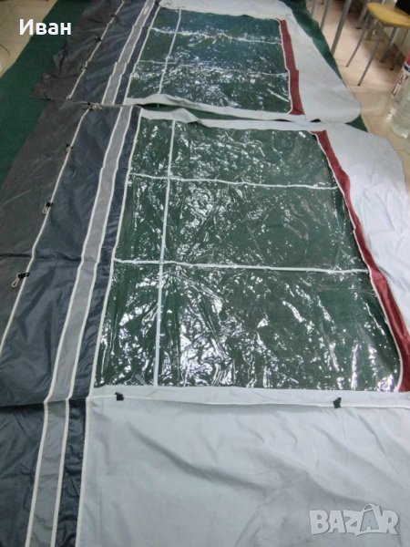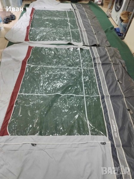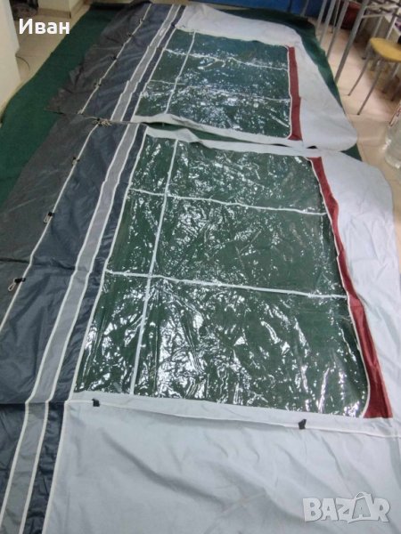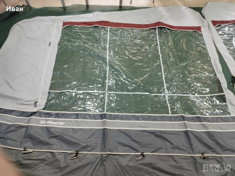 форселт Bradcot Marquese.Размер 930см(924-938)см земя -земя.Материята,прозорците,циповете и конструкцията са в отлично състояние. Дишаща непромокаема четири сезонна материя на страниците и дебел винилов покрив. С удебелена калобранна пола. Светли и чисти прозорци. Перфектни двупосочни ципове, позволяващи отваряне на всички страници както отгоре-надолу, така и странично. Може да се обособява врата,както отпред така и от двете страни. И четирите страници могат да бъдат частично отворени или премахнати напълно. Пълен комплект конструкция с поцинковани стоманени рейки. На места има малки следи от изцапано.