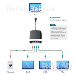 USB 3.1 към 4-портов Gigabit интернет адаптер