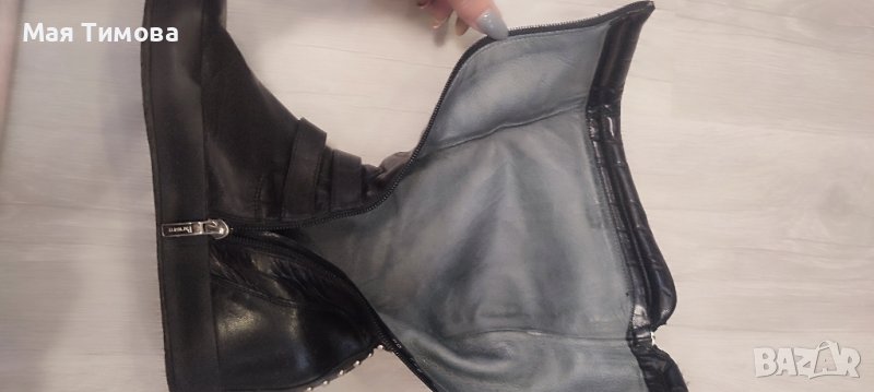 Дамски ботуши естествена кожа 4us Cesare Paciotti. Има подвижна платформа на петата, която може да се маха и да става равен ботуша. Стелка 26 см. Според мен е малко по-голям от 39-ти номер.