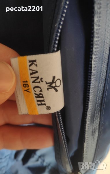 Продавам - пролетно/есенно двулицево детско яке Кай Сян 16г. Якето е здраво, няма протрито или скъсано. Двулицево - едната синя страна е шушляково, а другата сива страна е памучна. Якето има качулка, която може да се сваля при необходимост. Размерите са - от рамото до долу - 63 см, дължина между мишниците - 46 см, дължина на ръкава от мишницата до края на ръкава - 43 см. Цена - 19 лв.