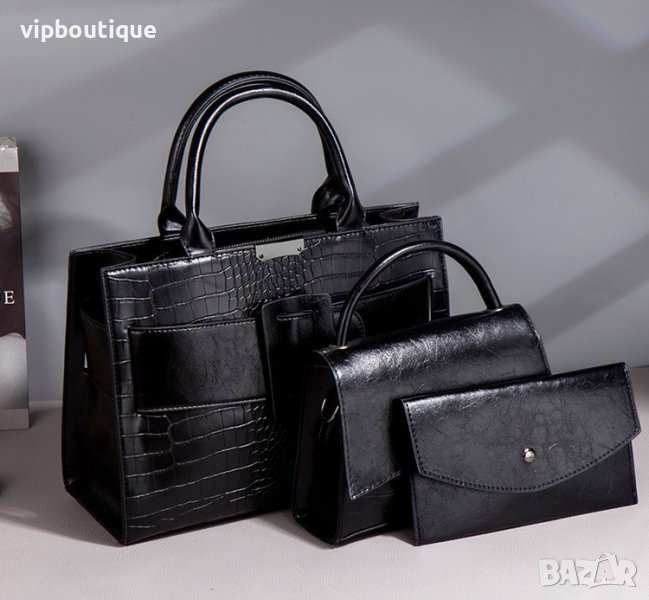 Черна Кожена Дамска Чанта Сет Комплект → Обява 43064315