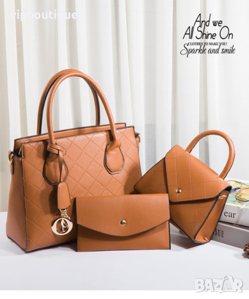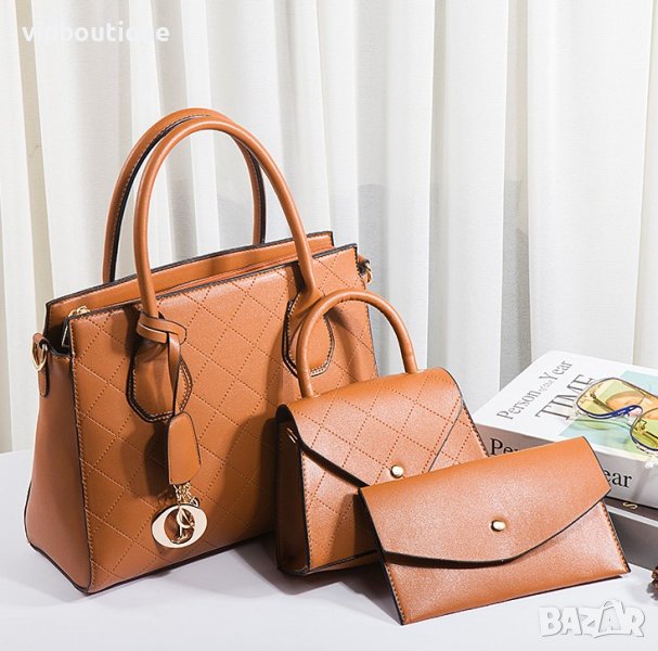 Кафява Кожена Дамска Чанта Сет Комплект → Обява 43064326