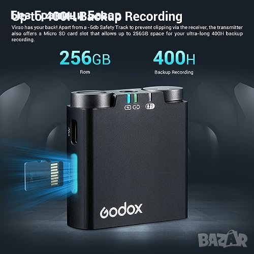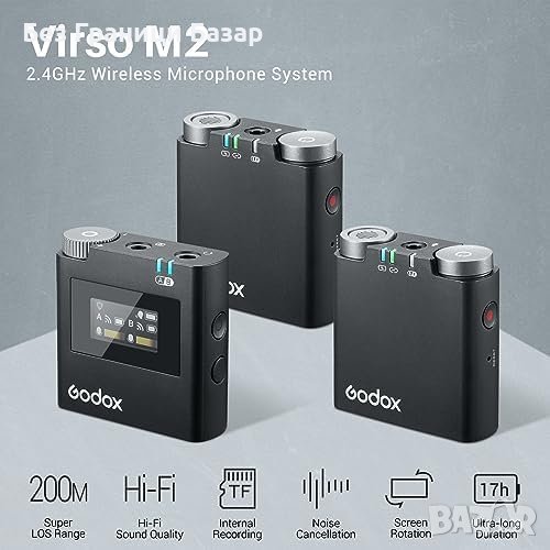 Нов GODOX Virso M2 Лаважен Микрофон с Шумоподтискане за видео влог