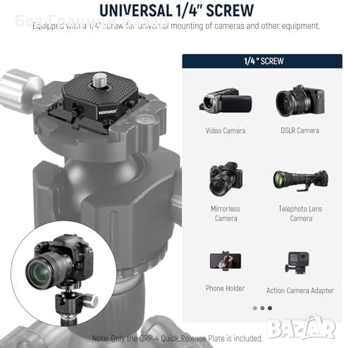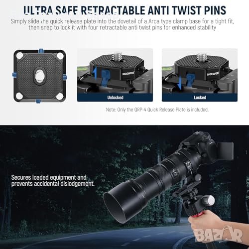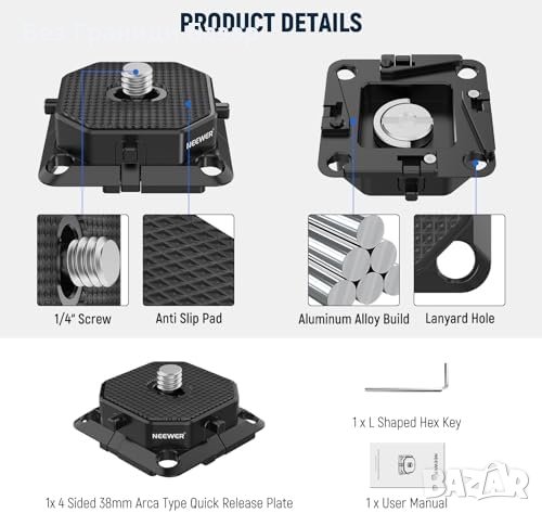 Нова Neewer Универсална Бързосменяема Плочка с 4 Арка Слота