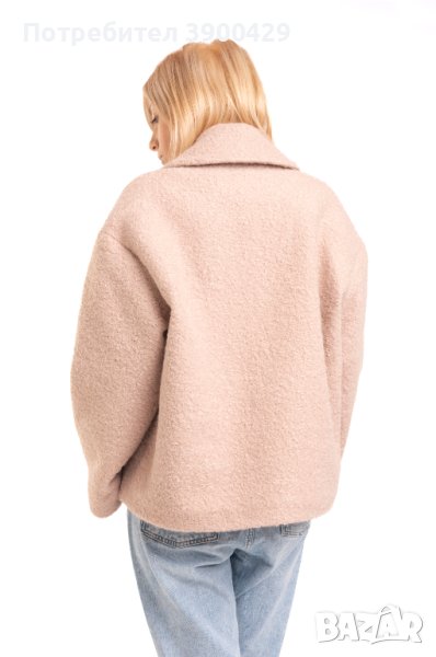 Oversize късо, двуредно дамско палто от вълнено букле.