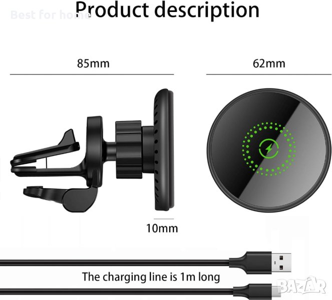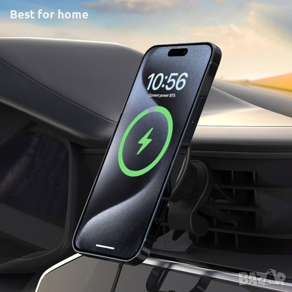 【Магнитна стойка за телефон за кола】 Силните магнити държат телефона ви здраво на място, силната вентилационна скоба и опорното рамо осигуряват на скобата допълнителна стабилност! Поддържайте бързото зареждане на телефона си безжично, докато шофирате. за неравен терен се препоръчва официален калъф MagSafe.