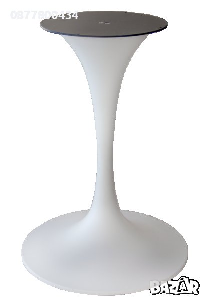 Предлагаме и налични на склад само основи в бял и инокс цвят-с ед.цена 270.00 лв с ДДС.Тези основа можете да се комбинира с верзалитен плот за маса с диам. до 80см.,който се поддържа на склад-с разнообразни десени,с цена за брой 96.00 лв с ДДС..