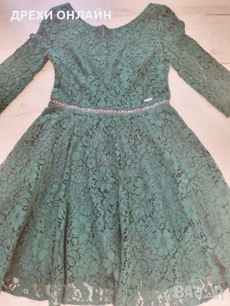 Оригинална рокля на Guess, размер С, обличана веднъж(за 1 час, фотосесия), цвят- зелен, дантела