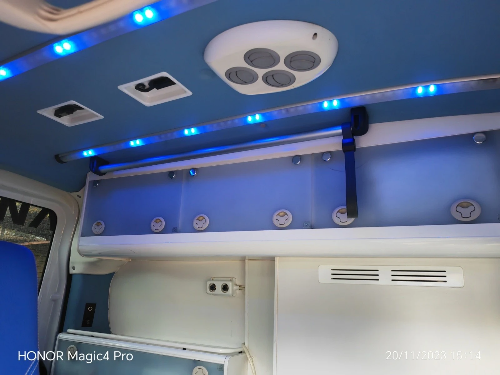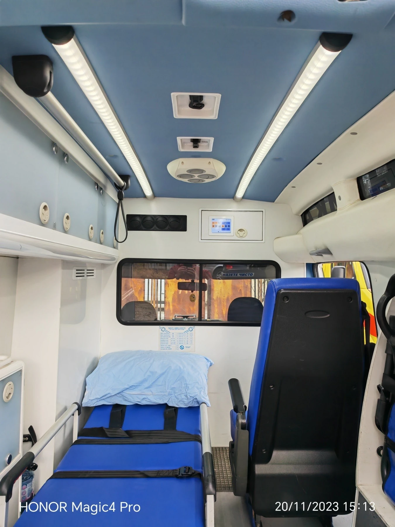линейка Фиат Добло 2. 0 Мултиджет, отговаряща на стандарта EN 1789 за тип А и В. Основна автотовареща се носилка със специален дюшек, комплект колани за фиксиране на пациента, регулируема облегалка за изправяне на пациента, спирачки на колелата, специално за тежки пациенти с максимално натоварване до 200 кг. , заключващ се и фиксиращ механизъм на носилката, заедно с монтажен комплект с 10G. Стационарна вградена кислородна инсталация по стандарт DIN с 1 брой кислородни бутилки от 10 литра. Вградена светлинно-звукова сигнализация, сирени и високоговорители в надстройката, всички с централно управление и пулт за водача в кабината на водача. Допълнително транспортен стол вграден в отсека за пациенти. Отделни шофьорска кабина и пациентски отсек. Шофьорска кабина с 2 седящи места. Пациентски отсек с носилка и 1 седящо място с предпазни колани. Климатична инсталация в отсека за водача. Климатична инсталация в пациентския отсек със собствено управление. Вентилационна система. Вградена ел. инсталация под напрежение 12 V и контакти за захранване на медицинска апаратура в пациентския отсек. Износоустойчив и водоустойчив под, подходящ за санитарно-хигиенни мероприятия. Дръжки за медицинския персонал. Шкафове - 5 броя, подредени по начин удобен за бърза манипулация. Осигурени изводи за медицинска апаратура. Осветление в медицинския сектор със самостоятелно захранване. Два пулта за управление на вътрешно и външно осветление. Вградено радио със CD плеър. Ел. стъкла и ел. огледала. Пълна сервизна история. В перфектно състояние и без забележки.