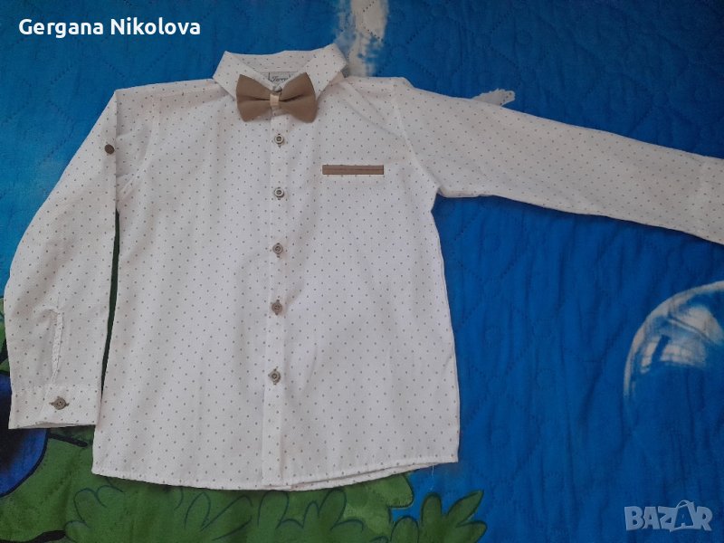 Официален панталон с тирани,риза и папионка.За 7г.,обличан веднъж ,цена 30лв.При интерес имам и обувки за продаване подходящи за комплекта.