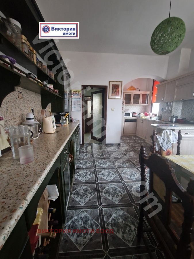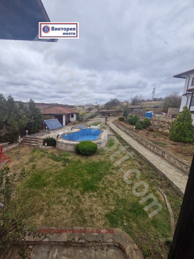 Екипът на Виктория Имоти предлага на своите клиенти чудесно предложение за монолитна двуетажна къща в китното село Арбанаси, разположено само на 3 км от Велико Търново, и е притегателен център за голям процент от туристите в района. Самият имот представлява дворно място от 1500 кв.м. с изграден басейн (голям и детски) с пречиствателна система и помпа, и красиво озеленяване. Къщата се състои от общо три нива, като жилищната площ е на две нива по 137 кв.м,, общо 274 кв.м. На тях са поместени огромна дневна, трапезария, кухня, спалня с баня с тоалетна и коридор на първото ниво, и още 4 спални, две бани с тоалетни, вестибюл и голяма остъклена тераса на второто ниво. На най-долното ниво са поместени маза и голямо котелно помещение. Отоплението е уредено с няколко вида системи - на ток и на газ, като има и наличен бойлер, свързан към слънчеви панели. Интериорно къщата е изцяло завършена, обзаведена и оборудвана.