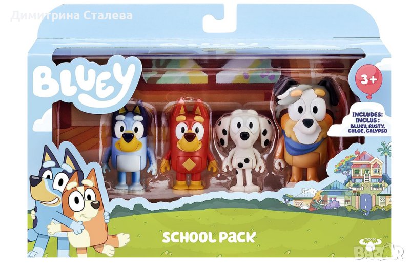 Съберете приятелите на Блуи в пакет от 4 фигурки на приятеля на Блуи. Приятелският пакет Bluey включва Bluey и нейните приятели Snickers, Honey и Coco.