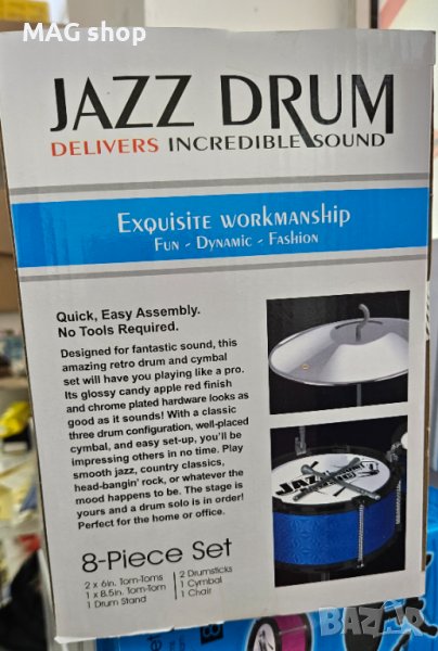 - Комплектът барабани съдържа 1 голям барабан, 2 средни