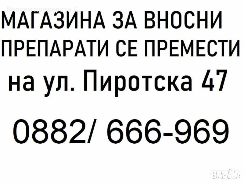 Вносни препарати. Магазин Гр.София Център, ул. Пиротска 47