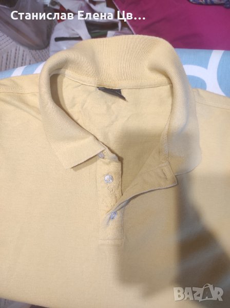 Мъжки, черни еластични дънки, на крачолите и на талията са с ластик, отстрани имат джоб. Към тях жълта тениска с якичка. Използвани, но много запазени.