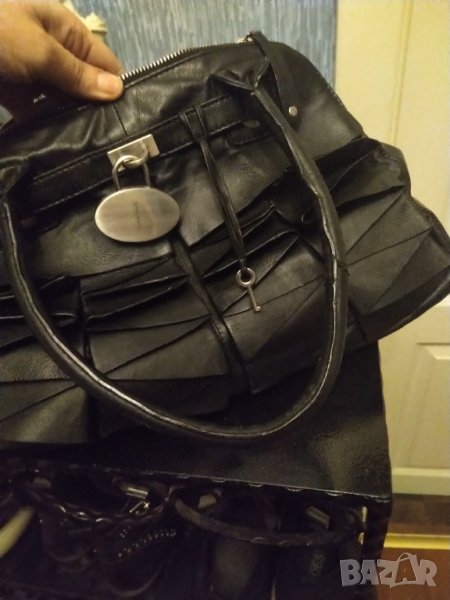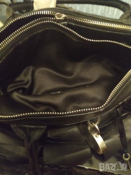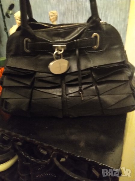 JASPER CONRAN чантата е 100% оригинална изцяло естествена кожа мека .Има три основни отделения две с цип и едно със скрити магнитни копчета ,още малки отделения за телефон документи и прочие .размер 35 на 25 см ,може да се носи и през рамо и през ръка .катинарчето е действащо .отпред е с къдри .съвсем леки следи от носене на едната дръжка ( съобразено с цената ) който е запознат с марката знае колко струват .цената е крайна .