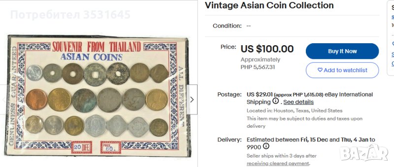 Лот 15 от серията Азиатски монети е закупен за 40 долара
