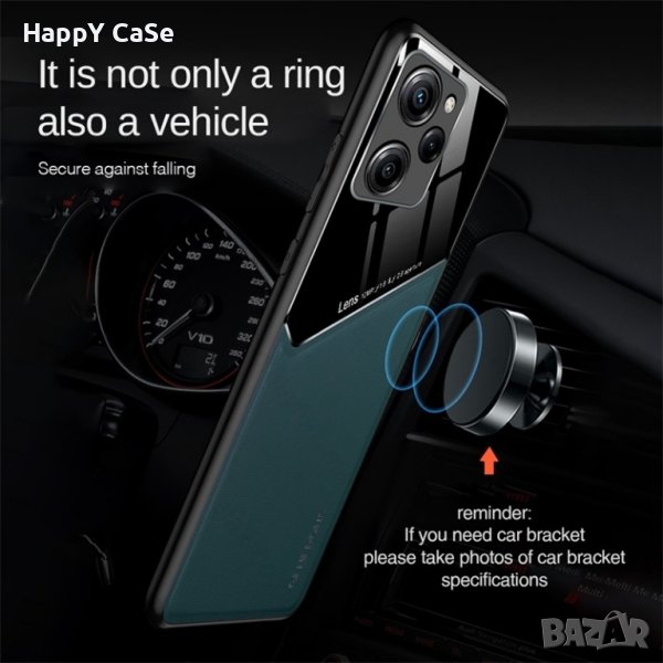 3. Възможност за закрепване към магнитна стойка в автомобил, чрез вградена метална пластина на гърба в средата на кейса под кожата.