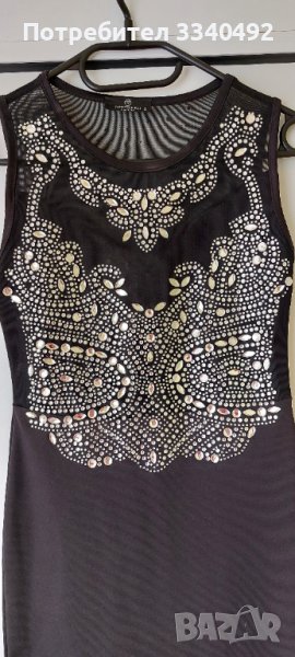 Много красива, къса черна рокля с камъни отпред и отзад.Размер "xs/s.