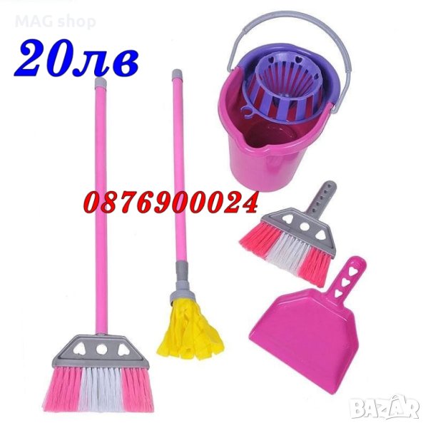 Детски комплект за почистване с кофа, моп, метла и лопатка с