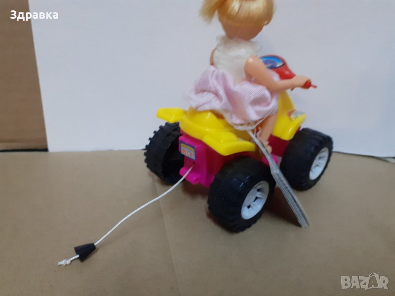 Кукла на АТВ. Механична играчка придвижва се сама след издърпване на шнурчето от задната страна.