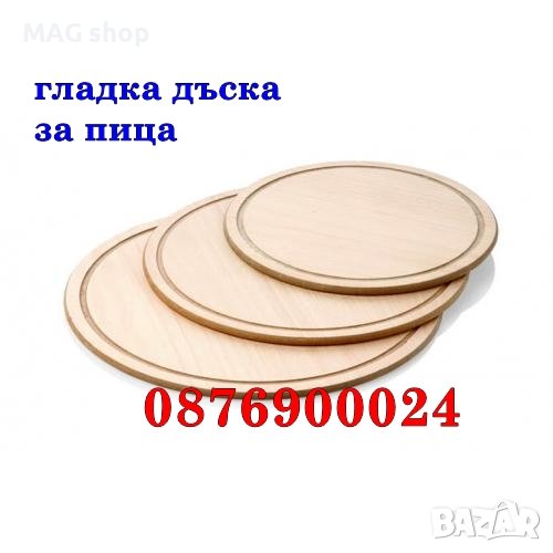Дървените дъска за пица са изработени от дървесина с дебелина 2 см и крачета, подходяща за пица на парче оразмерена на 8 или 10 парчета , както и гладка дъска.