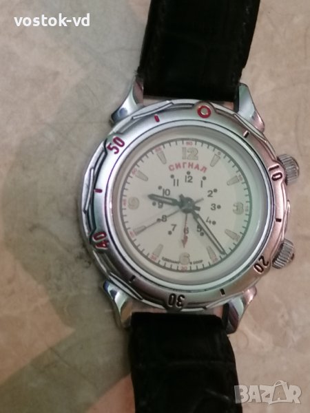 ВОСТОК СИГНАЛ ЗВЪНЕЦ 18 JEWELS - РАБОТЕЩ МЪЖКИ ЧАСОВНИК МЕХАНИЧЕН, КОЖЕНА КАИШКА, РАБОТИ ПЕРФЕКТНО, КОЖЕНА КАИШКА, ДИАМЕТЪР НА КАСАТА 39ММ