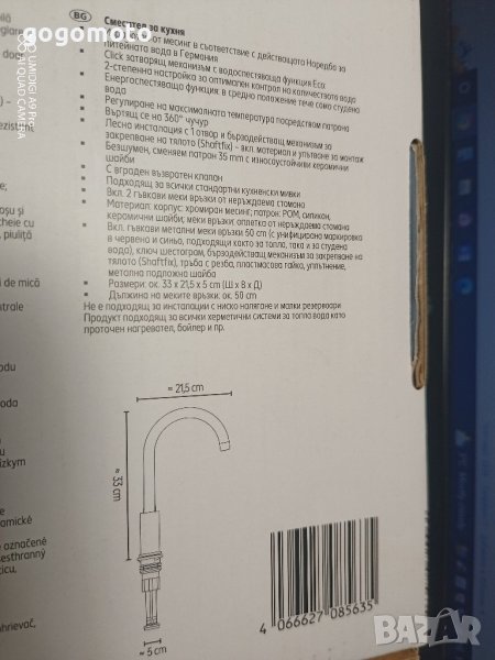 НОВ Кухненски смесител Cosmopolitan, Висок чучур, Керамичен патрон