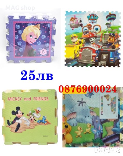 МОДЕЛ 2: Детски пъзел килим с Дисни герои 9 броя в комплект 31х31х2см Цена: 25лв