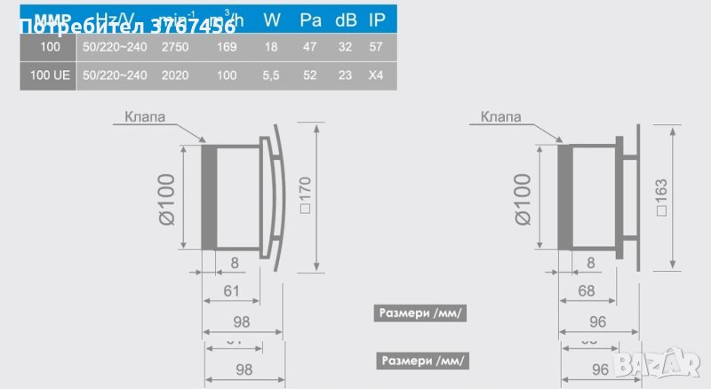 Дизайнерски вентилатор за баня MMotors, квадрат с клапа, извито стъкло , Ф100, 105 м