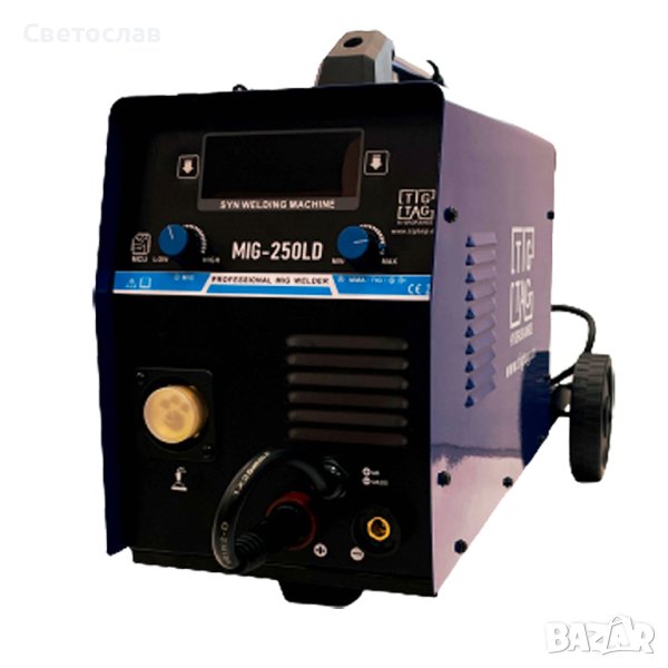 Телоподаващ апарат MIG250LD е комбиниран MIG/MMA и LiftTig апарат инверторен тип, с висок коефициент на полезно действие, преносим и монофазен. Апаратът е създаден по технология IGBT , лесен за обслужване и работа, подходящ за монтажни дейности. С него може да заварявате всички видове: черни метали, алуминий, неръждаема стомана. Регулирането на заваръчния ток е плавно от 50 до 250 ампера, има и отделно регулиране на индуктивността за постигане на по-дълбок или по-плитък провар в зависимост от дебелината на заваряваните детайли. Апаратът е окомплектован с еврошланг 3 метра за МИГ заваряване 150 Ампера, ръкохватка за ММА заваряване, маска, чукче с четка, кабел маса, количка.