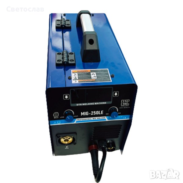 Телоподаващ апарат MIG250LD е комбиниран MIG/MMA и LiftTig апарат инверторен тип, с висок коефициент на полезно действие, преносим и монофазен. Апаратът е създаден по технология IGBT , лесен за обслужване и работа, подходящ за монтажни дейности. С него може да заварявате всички видове: черни метали, алуминий, неръждаема стомана. Регулирането на заваръчния ток е плавно от 50 до 250 ампера, има и отделно регулиране на индуктивността за постигане на по-дълбок или по-плитък провар в зависимост от дебелината на заваряваните детайли. Апаратът е окомплектован с еврошланг 3 метра за МИГ заваряване 150 Ампера, ръкохватка за ММА заваряване, маска, чукче с четка, кабел маса, резервна контактна дюза.