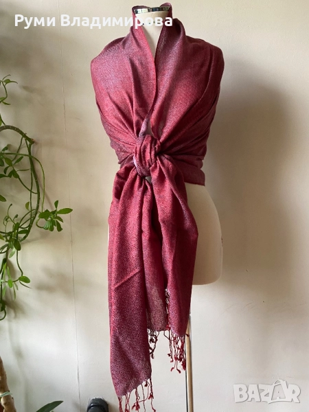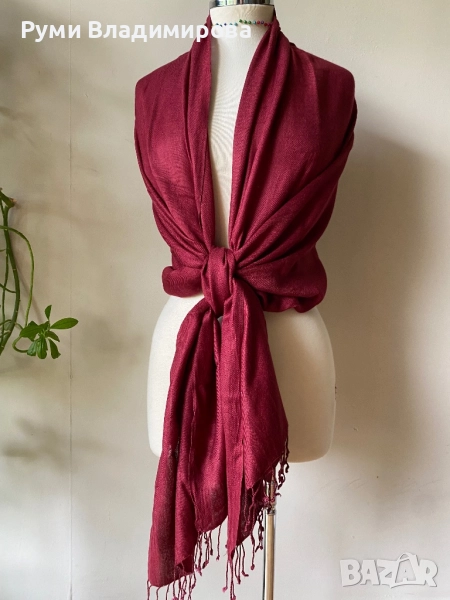 Тъмночервен шал от кашмир, вълна, коприна, вискозаразлични видове → Обява 43084461