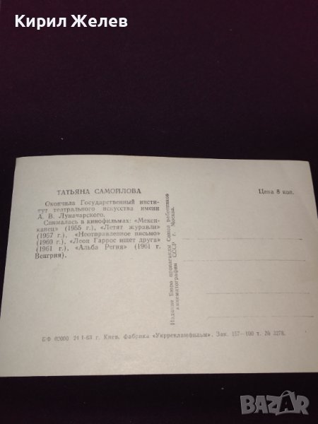 Стара картичка с актрисата ТАТЯНА САМУИЛОВА СССР рядка за КОЛЕКЦИОНЕРИ 32306