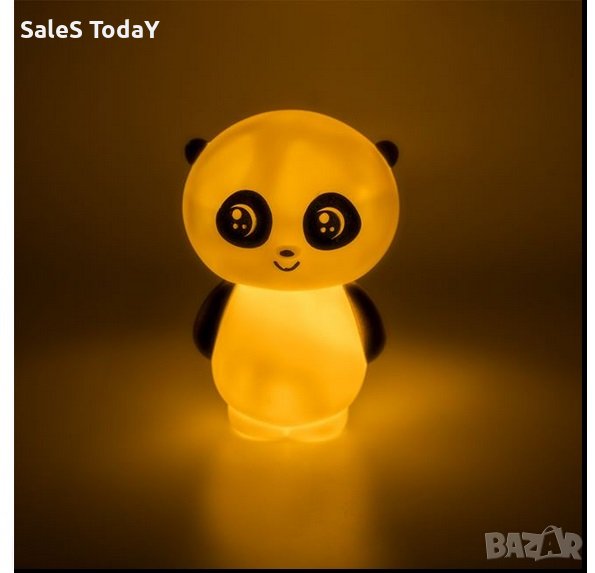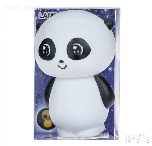 Нощна лампа на батерии във формата на плюшено мече бяло/черно с постоянна светлина. Има бутон за включване/изключване. Работи с 3 батерии тип LR44 (включени).
