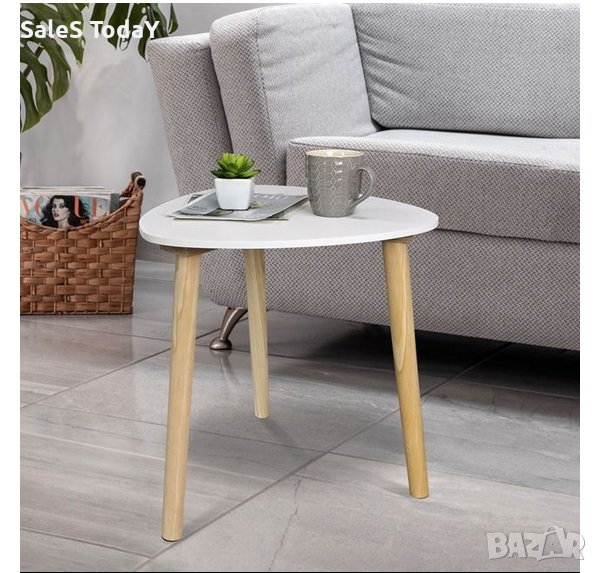 Бяла помощна маса в триъгълна форма със заоблени ръбове и 3 завинтващи се крака, в естествен светъл цвят. Идеален е за всяка част на къщата.