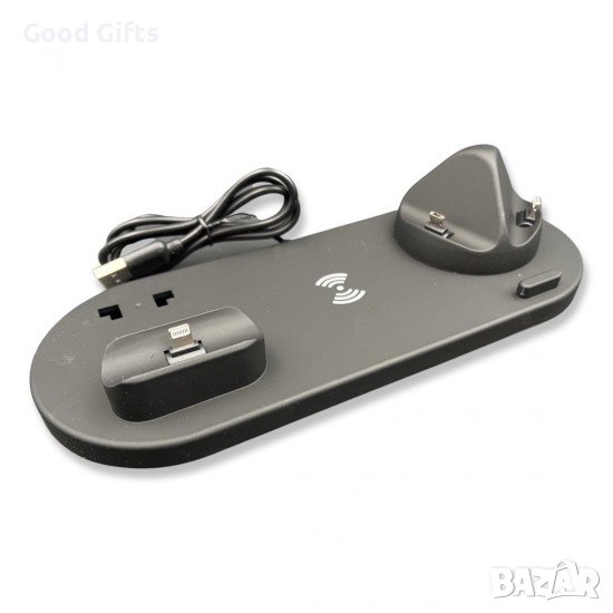 Универсално приложение 5 в 1 Наличен интерфейс за зареждане на всички Android устройства (Micro USB и USB Type-C) и iOS устройства (Lightning Dock); Възможност за безжично зареждане на всички устройства поддържащи такова; Зареждане на iWatch 1/2/3/4; Зареждане на Airpods 1/2. Съвместимост Напълно съвместима с всички Android устройства и с всички iOS устройства от iPhone 5 (включително) нагоре. Автоматична защита Разполага с вградена автоматична защита от прегряване, презареждане, контролира температурата, както и разпознава наличието на чужди обекти (при безжичното зареждане). Предпазва батерията на Вашето устройство от презареждане и съответно от по-бързо износване. Високо качество и стил Изработена от иновативен силиконов материал, докинг станцията предпазва Вашите устройства от нежелано надраскване, както по корпуса, така и по самият дисплей. Напълно подходящ аксесоар за Вашият дом, офис и др. Технически характеристики: