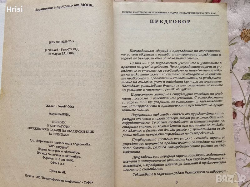 Езикови и литературни упражнения и задачи по български език за пети клас → Обява 43089952