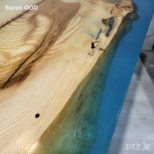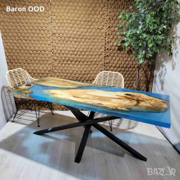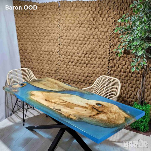 Трапезна маса, маса за хранене от масивно дърво и епоксидна смола → Обява 43091080