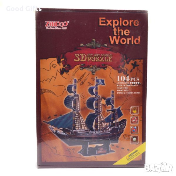 3D пъзел във формата на кораб, състоящ се от 104 елемента.