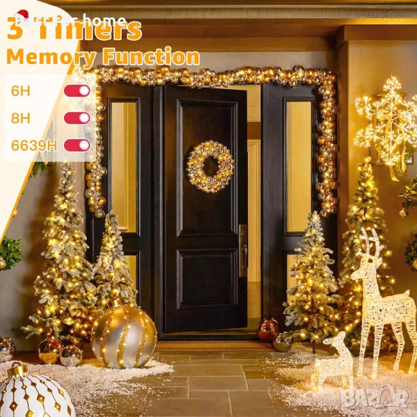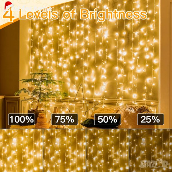 4 нива на яркост и 3 таймера - Димируеми: 100%-75%-50%-25%; Таймери: 6 часа включено/8 часа включено/6 часа включено, след това 3 часа включено. Чрез настройката на таймера коледните светлини ще светват навреме всеки ден. Вграденият чип с памет ще запази последната ви настройка за време.