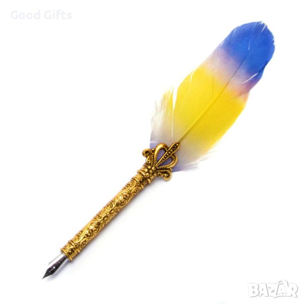 Комплекта съдържа писалка с перо, шишенце с мастило и 5 броя допълнителни писци.