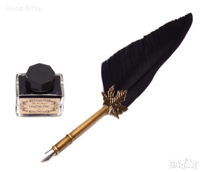 Комплектът съдържа писалка с перо, шишенце с мастило и 6 различни писци.