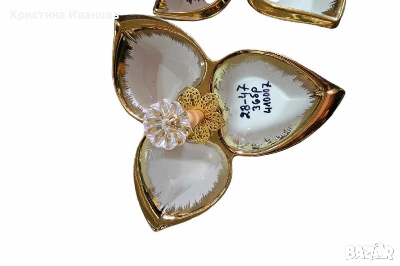 Луксозна порцеланова купа в бяло и златисто, с три гнезда за ядки. → Обява 43093887